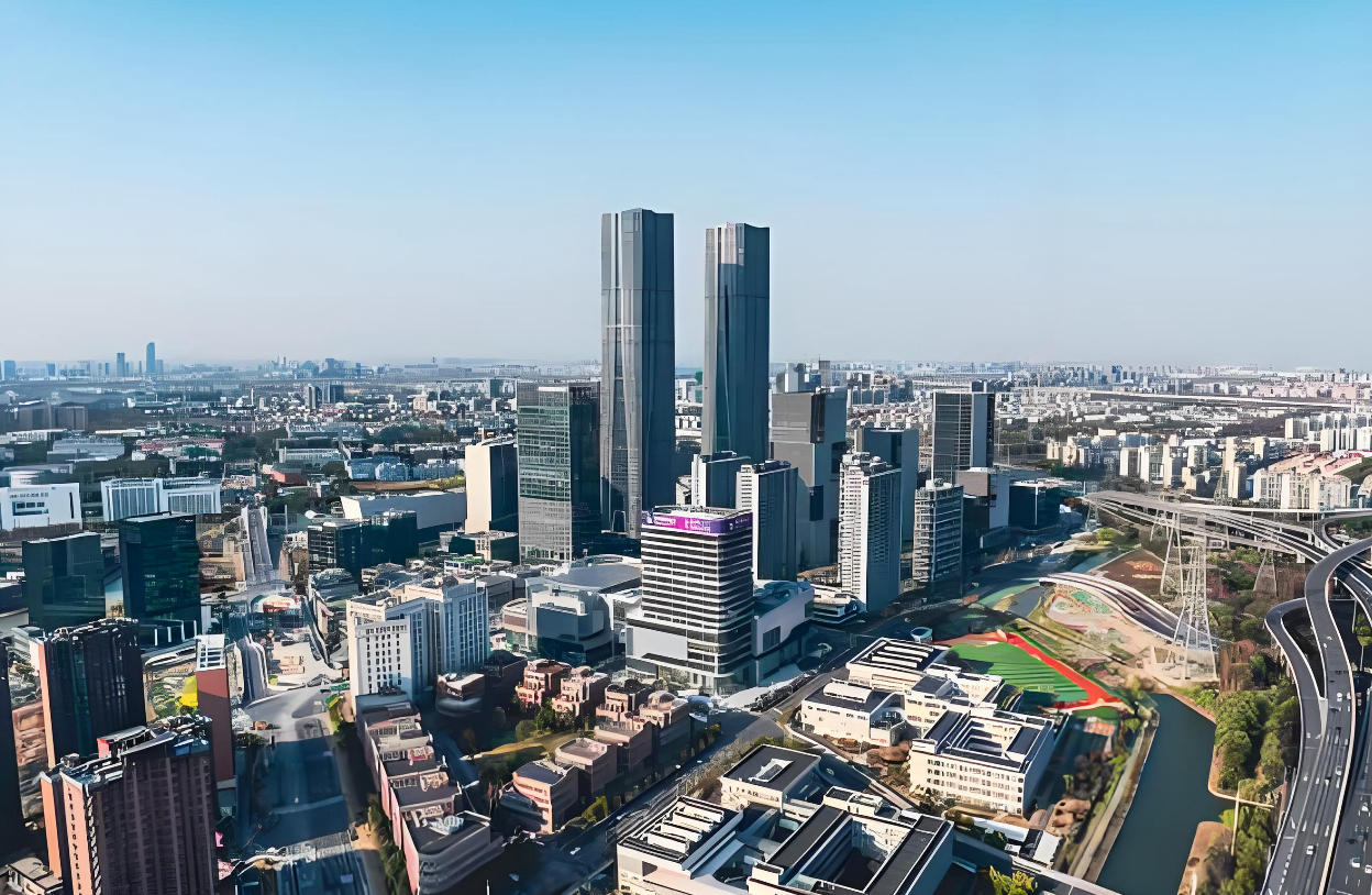 张江科学之门位于上海张江科学城核心区。项目由两栋 320 米高的超高层双子塔构成,是上海最高的双子塔。其总建筑面积超 80 万平方米,共由 8 个地块项目组成,涵盖超甲级办公、高端酒店、商业综合体、人才公寓等多元业态。